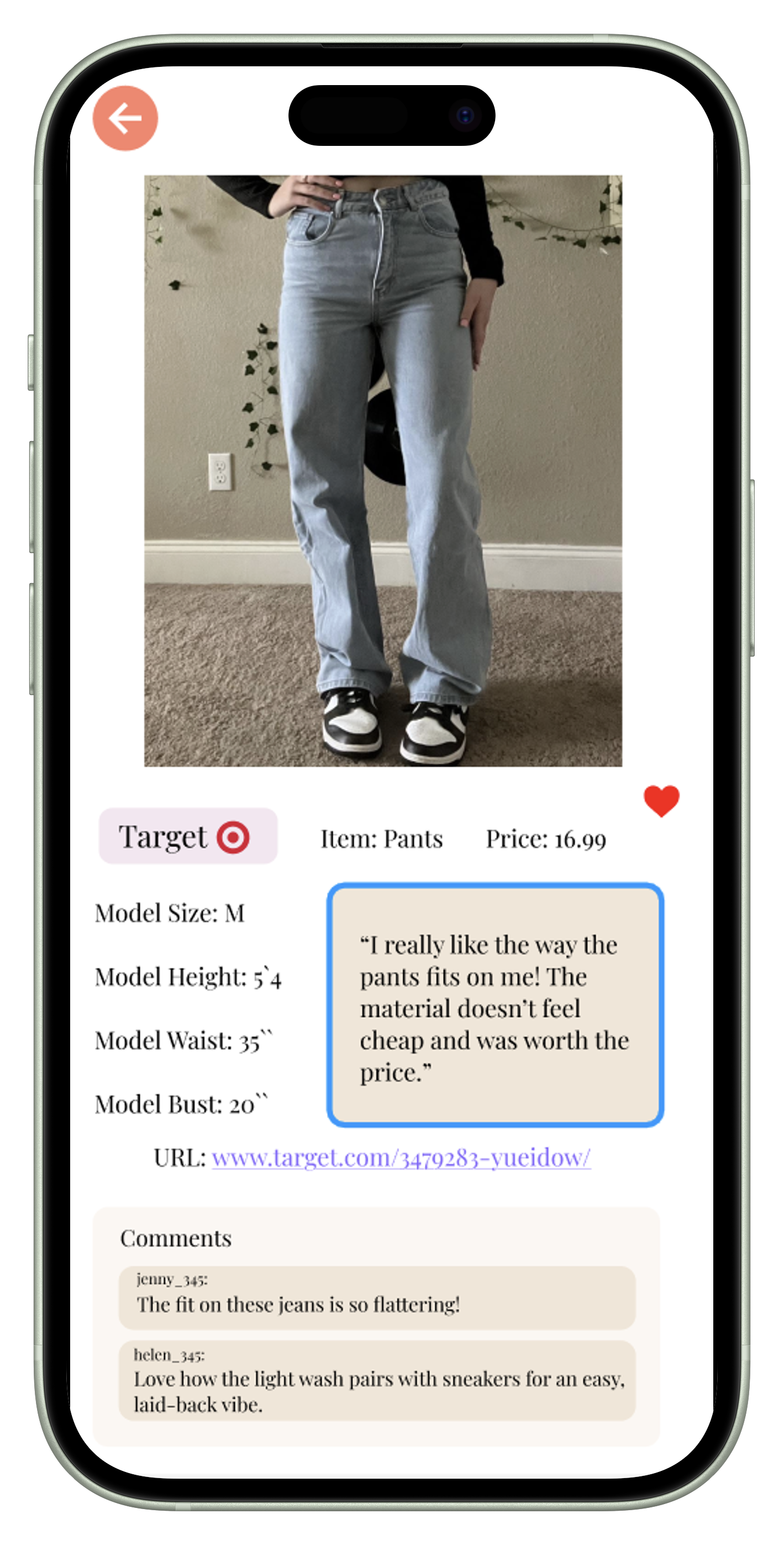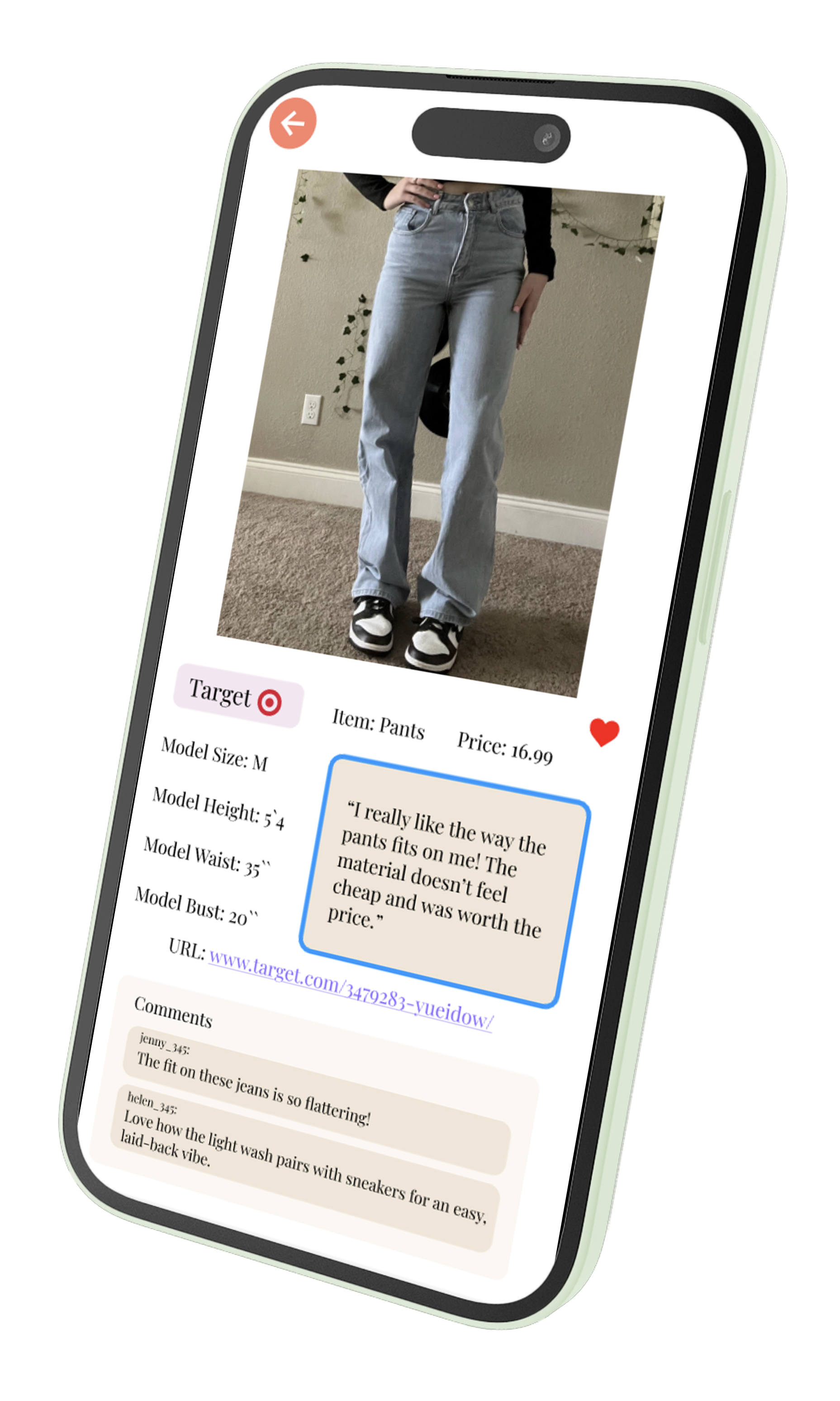 Young women represent a significant share of the online fashion market. 53.4% of all online shoppers are women, and those aged 18 to 24 account for 46.9% of this group. Yet, they face persistent challenges when shopping online. Inconsistent size charts, overly stylized product photos, and vague user reviews make it difficult to gauge how clothing will fit or look in real life. This lack of trustworthy, detailed feedback often leads to hesitation, dissatisfaction, and costly returns. As online platforms prioritize promotional content over shopper-centered information, there is a pressing need for tools that empower users to make confident, informed decisions.