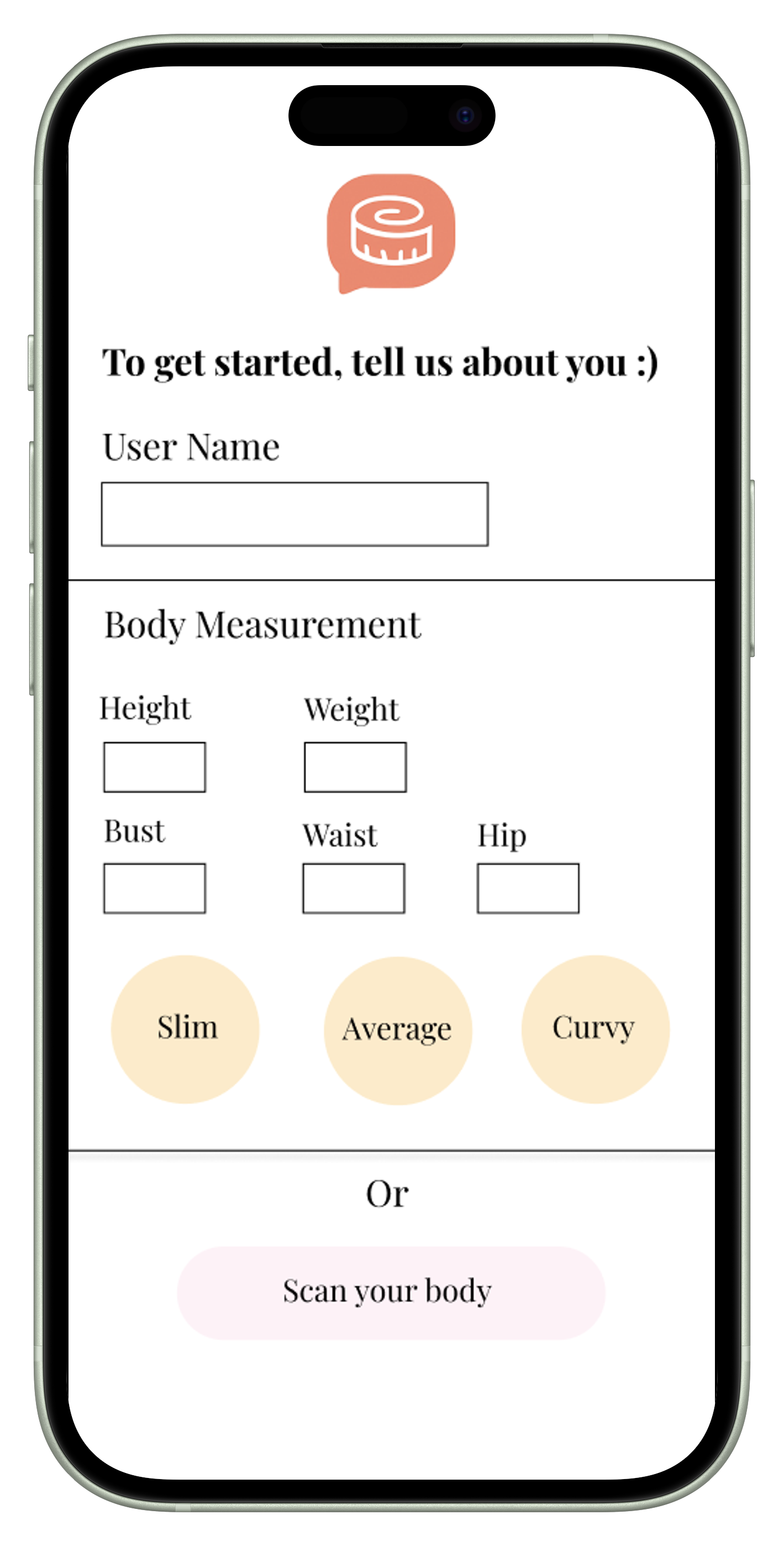 Here, users can input their body measurements manually or scan their body to create a personalized avatar. This empowers them to see clothing visualizations based on their unique shape while keeping anonymity (no need to show their face), which participants preferred for comfort